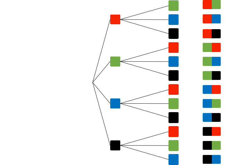 • Schülerdokument: Graphische Darstellung aller Kombinationen zur Einführung des Baumdiagramms (vgl. Unterricht)