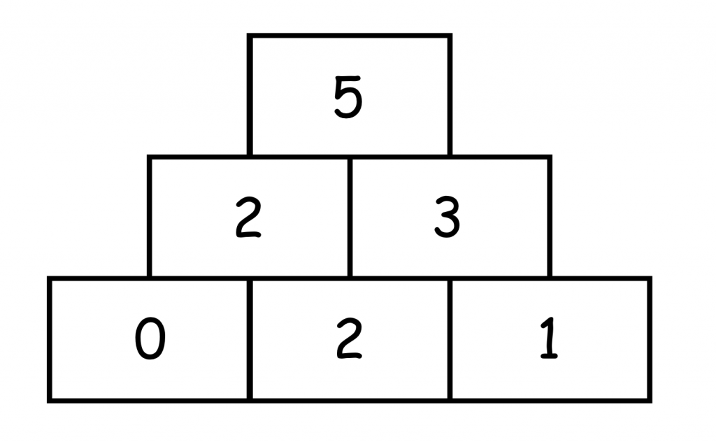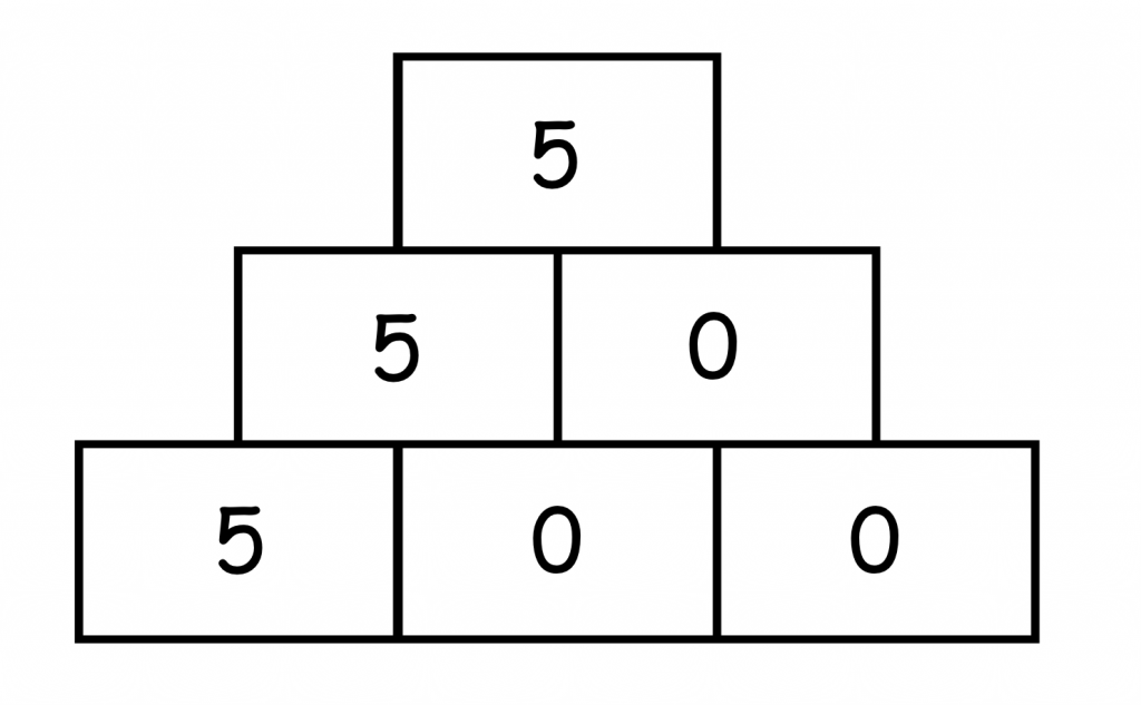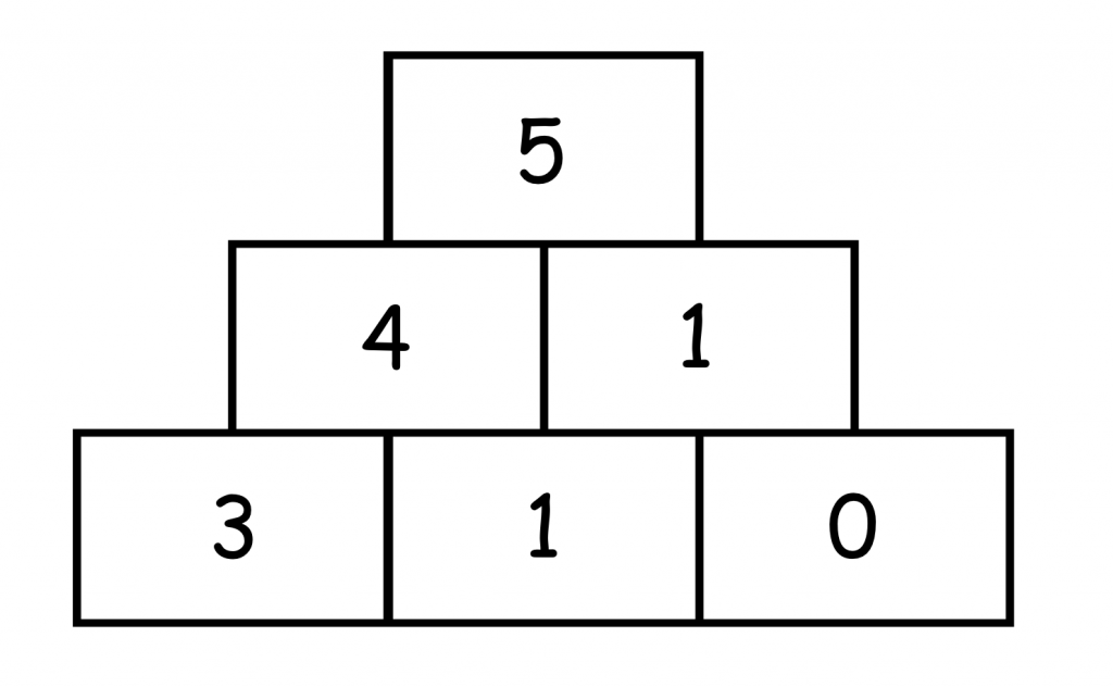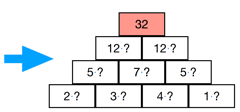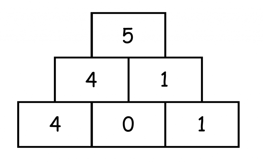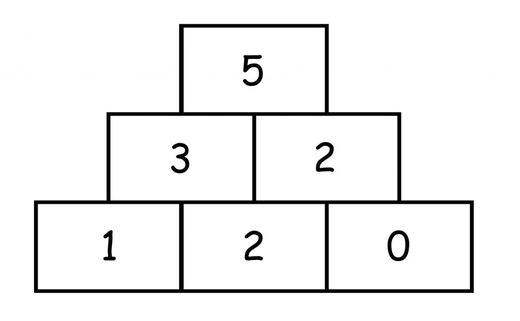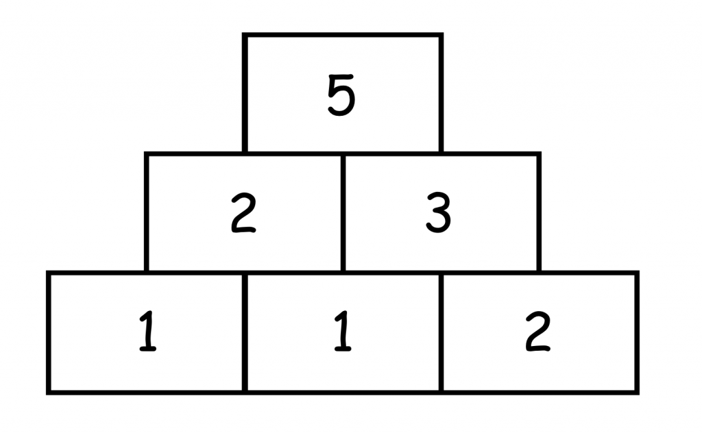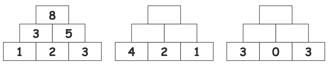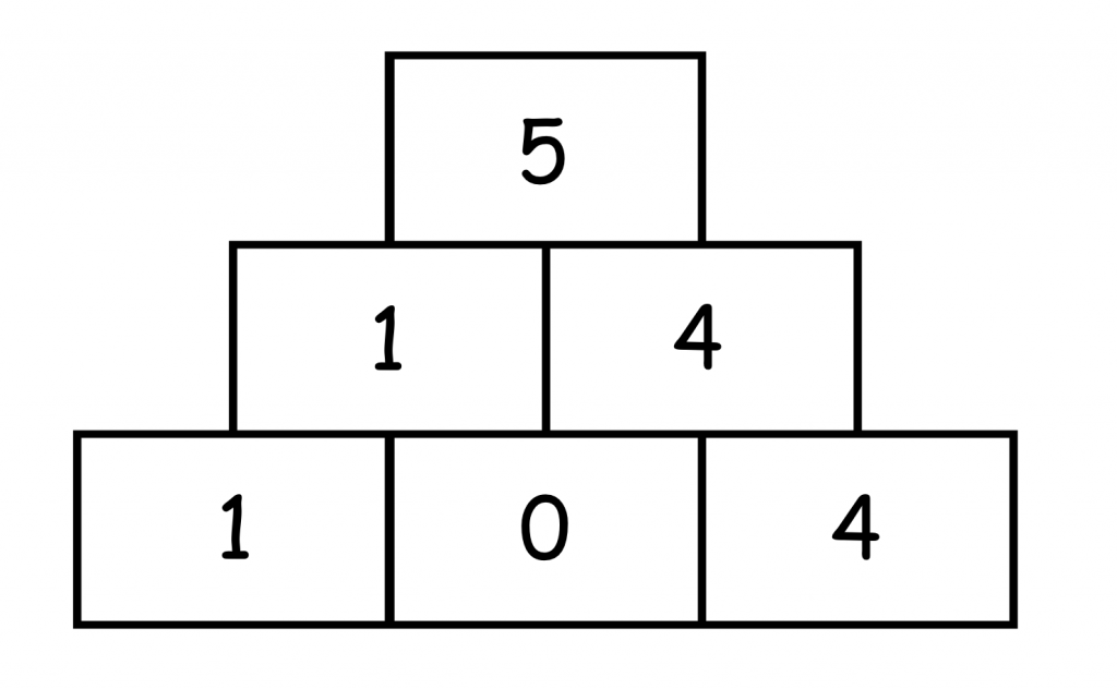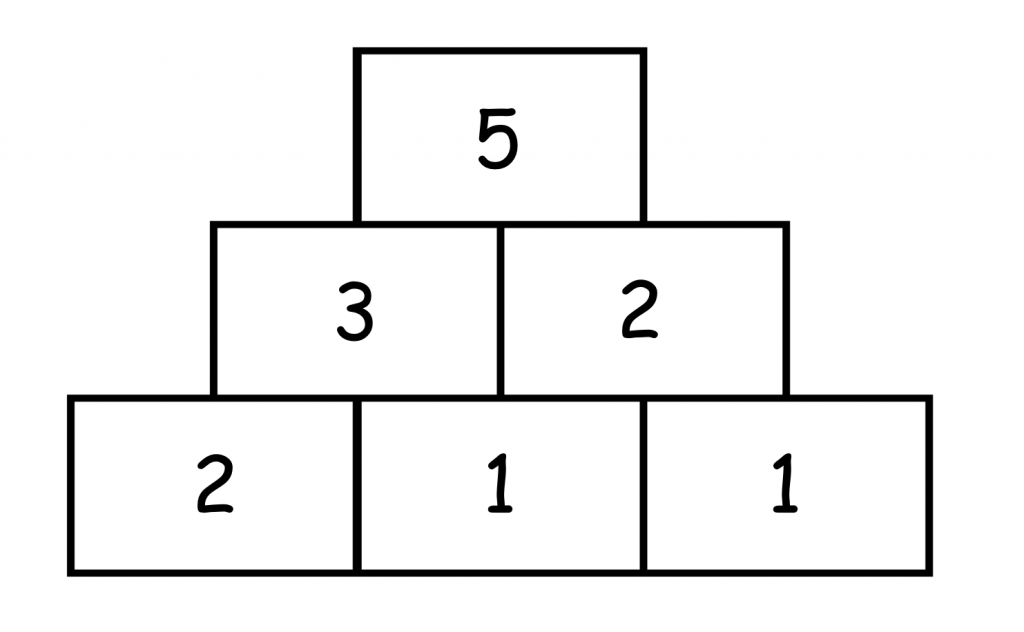 Ist das Aufgabenformat den Schülerinnen und Schülern noch unbekannt, kann man die Struktur einer Zahlenmauer an einer Dreiermauer mit einfachen Zahlenwerten erklären.