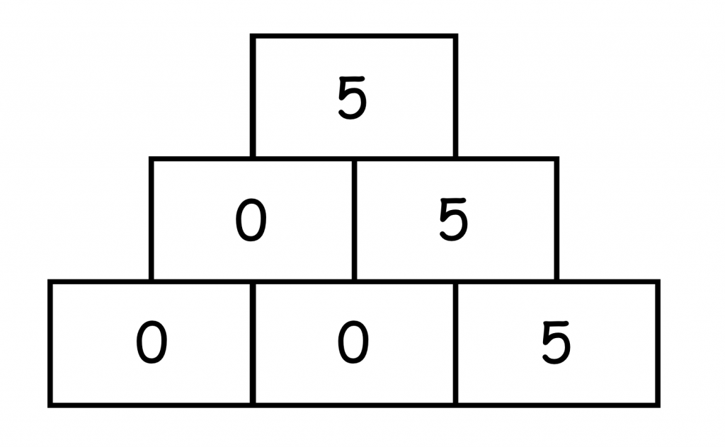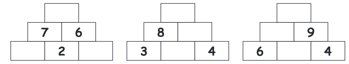 Drei Zahlenmauern mit den Decksteinen 5. „Finde möglichst viele Zahlenmauern mit dem Deckstein 5.“