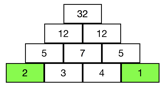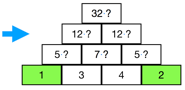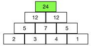 Einige Steine (und zwar in verschiedenen Zeilen) sind vorgegeben, die restlichen Steine sind zu berechnen.