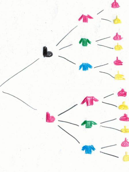 So können Kinder prüfen, ob es weitere Möglichkeiten gibt bzw. ob sogar alle Möglichkeiten gefunden wurden. Es kann eine Aussage darüber getroffen werden, wie viele Möglichkeiten es gibt, dass ein grüner Pullover angezogen wird und welche Kombinationen mit einem grünen Pullover möglich sind.
