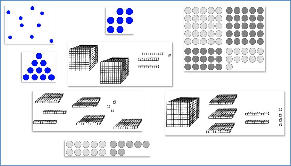 Abbildung 1: Verschiedene Mengendarstellung in verschiedenen Zahlenräumen zum „schnell Sehen“