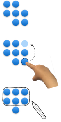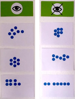 Beim Schnellen Sehen wird den Kindern eine Menge gezeigt – jedoch nur kurz. Aufgabe der Kinder ist es dann zu erklären, wie sie die entsprechende Menge gesehen haben – die korrekte Anzahl ist dabei nachrangig.