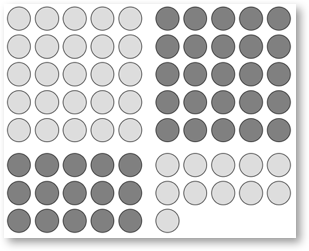 Genau das, was Sie gerade in der Eigenaktivität gemacht haben, können Schülerinnen und Schüler im Mathematikunterricht machen: Vorgegebenen Anordnungen sortieren nach den Merkmalen „Das kann ich schnell sehen“ und „Das kann ich nicht schnell sehen“.