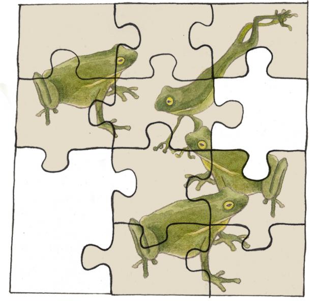 Marie hat neun Puzzleteile zusammengesetzt. Das Bild hat insgesamt zwölf Teile. Wie viele Teile fehlen ihr noch?