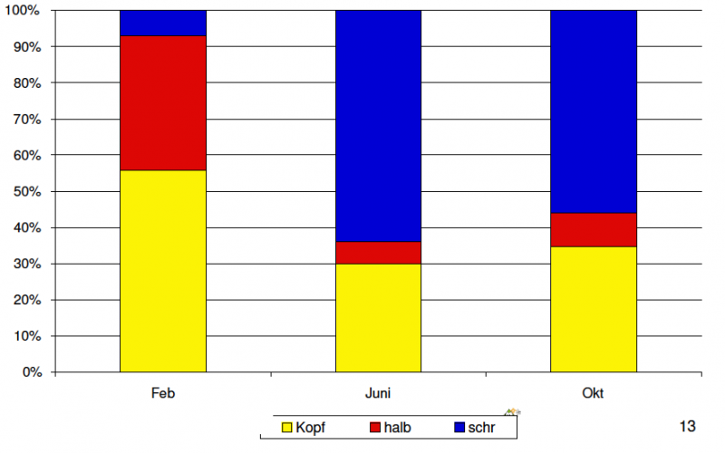 Die folgende Grafik illustriert das Ergebnis einer Untersuchung von Selter (2000), dass bei der Lösung der Aufgabe 701 - 698 (und anderer Subtraktionsaufgaben) das schriftliche Verfahren nach dessen Einführung von der Mehrzahl der Kinder genutzt wird.