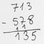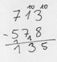8 + ? = 3 geht nicht. Ich entbündle einen Zehner, sind zehn Einer. So wird aus einem Zehner im Minuenden zehn Einer, und ich kann weiterrechnen. Also 8 + 5 = 13 usw.