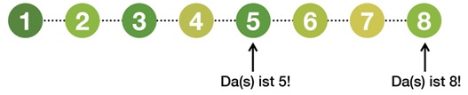 Mit der Idee des "immer eins weiter" repräsentiert der Zahlenstrahl die Unendlichkeit der natürlichen Zahlen (vgl. Klewitz et. al 2008, S. 24). Nachbarschaftsbeziehungen, insbesondere die Nachfolger- und Vorgängerrelation, werden besonders gut deutlich.