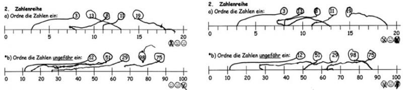 Jeweils vor und nach der Thematisierung des Zahlenstrahls hat die Lehrerin eine Standortbestimmung mit ihren Kindern durchgeführt.