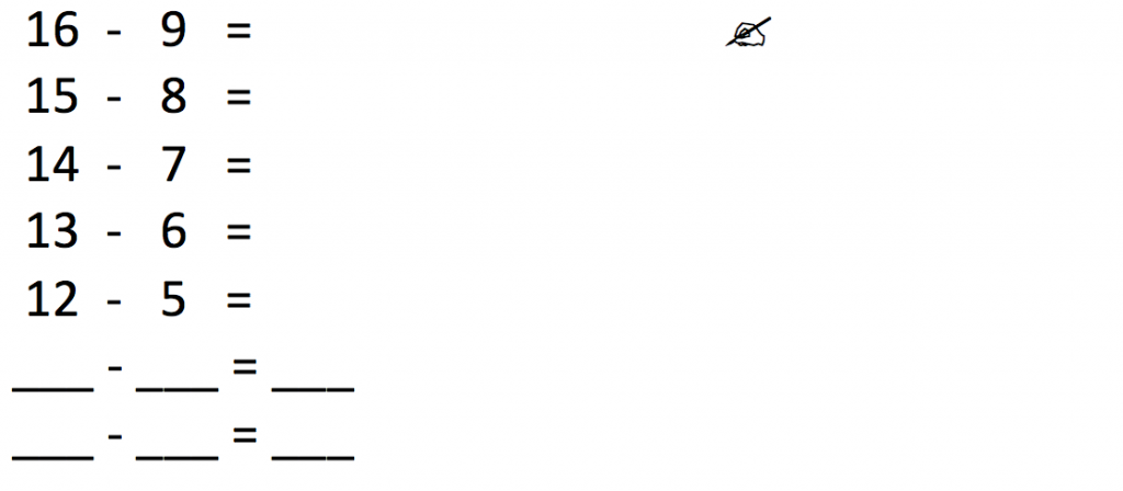 Nach den gestützten Phasen kann das strukturierte Üben ohne Material zum Vernetzen und Vertiefen auf formaler Ebene hilfreich sein (Feld 3). Hier setzen sich die Kinder aktiv mit Beziehungen zwischen den Aufgaben auseinander.