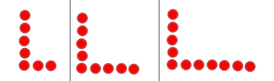 7. Alex: Ja, weil ich hab ja das erste gemacht (zeigt auf das Startbild), und dann immer mehr, und dann das zweite mit zweimal mit die Zwei und hier auch die Fünf (zeigt auf die fünf Plättchen in der Spalte im zweiten Bild) und hier (zeigt auf das dritte Bild) hab ich die dreimal die Zwei.